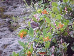 Foliage: Leaves 5 to 10 cm long. Whitish bloom on underside.