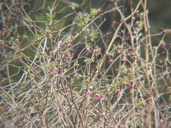Quick Check: Reddish barked stem armed with sharp prickles, red-purple flowers